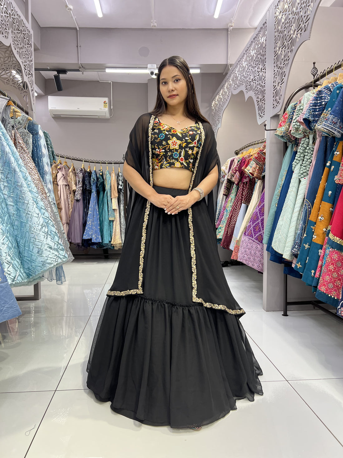 FABRIC DETAILS LEHENGA : Georgette Fabric With Real Mirror Embroidery Work. FLARE : 4 Meters...