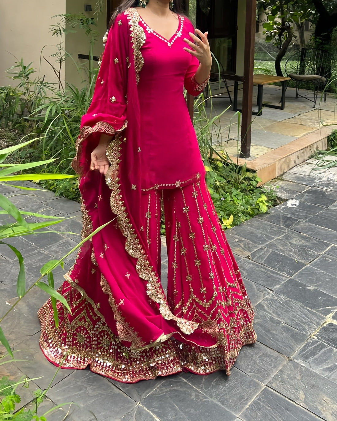FABRIC DETAILS : BOTTOM WEAR : Premium Georgette. WORK : Beautiful embroidery and sequins work...