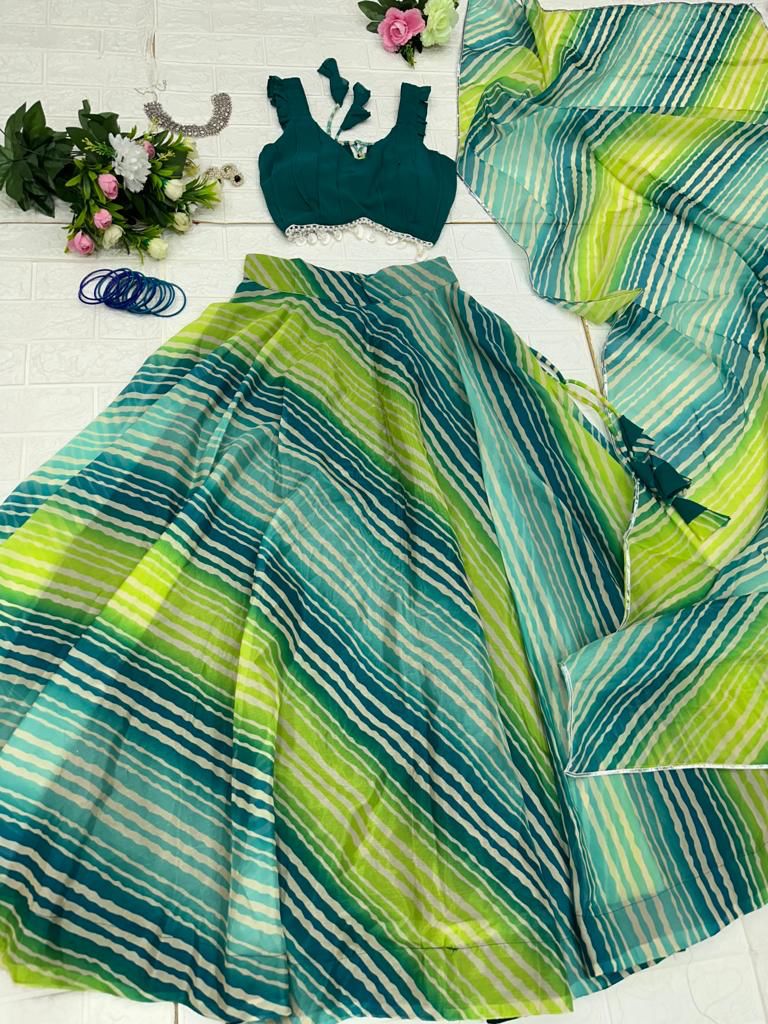 Leheriya Print Green Color Luxuriant Lehenga Choli