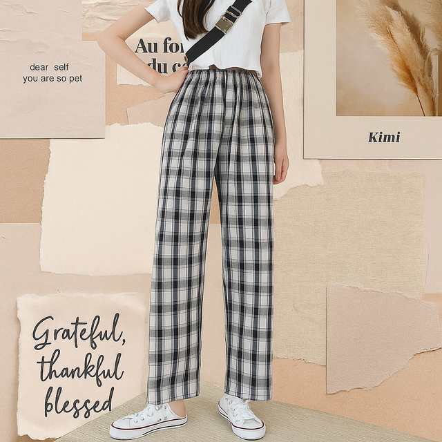 ✨ Korean Style Plaid Pants for Women – Lightweight Comfort with Trendy Streetwear Vibe