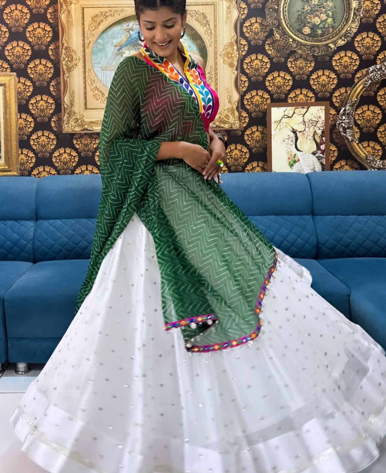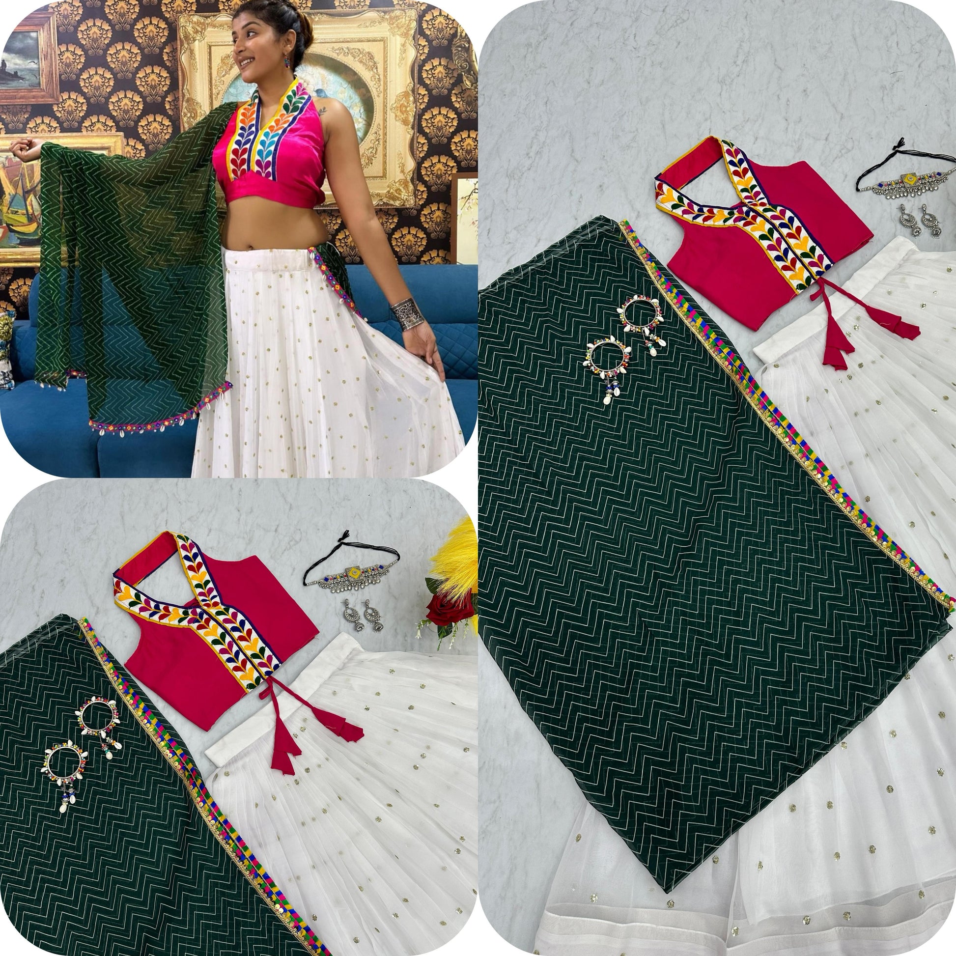 Stunning Gulaabi Ivory Navratri Lehenga Choli