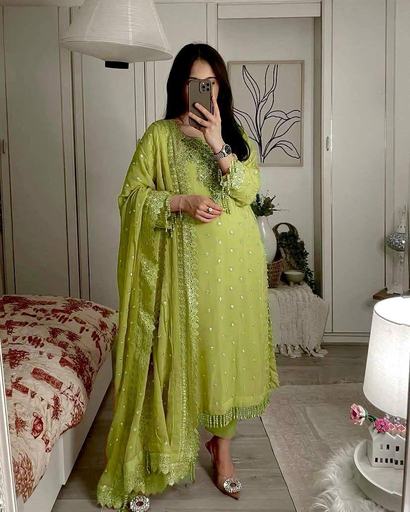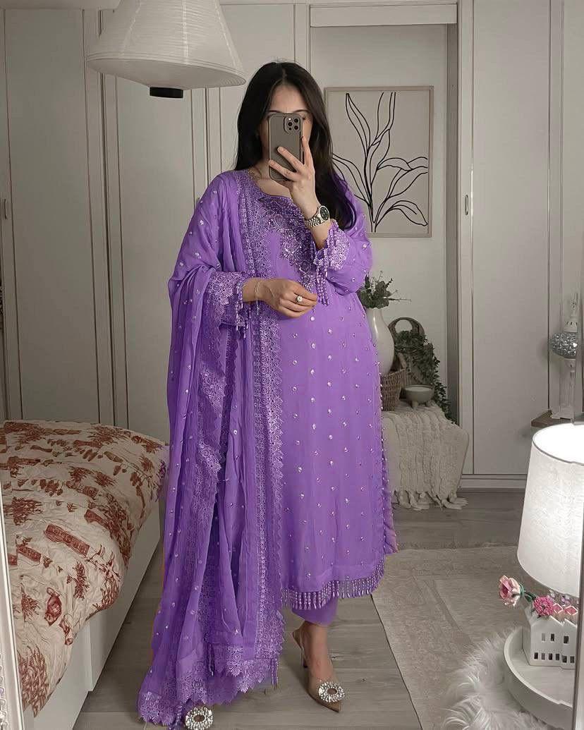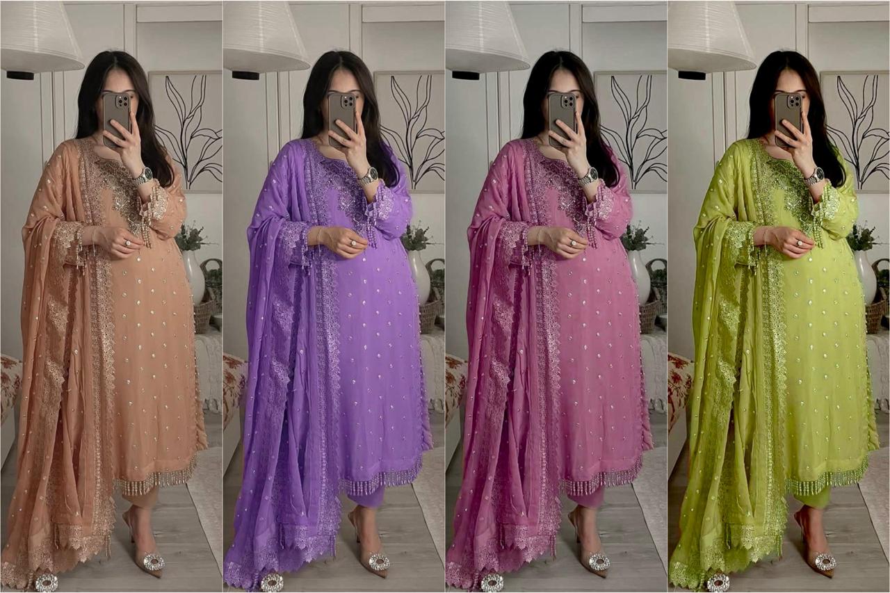 WORK : Sequins & Zari Embroidery Work with Fancy Lace on Borders.