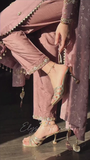 A stylish fully stitched 3-piece designer set made in heavy faux georgette, featuring heavy embroidery sequence work with elegant beads detailing. Comes with a matching embroidered pant and dupatta finished with lace border, perfect for festive and party wear looks.