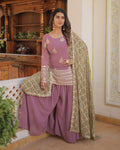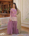 Beautiful Onion Color Georgette Three Piece Plazzo Suit