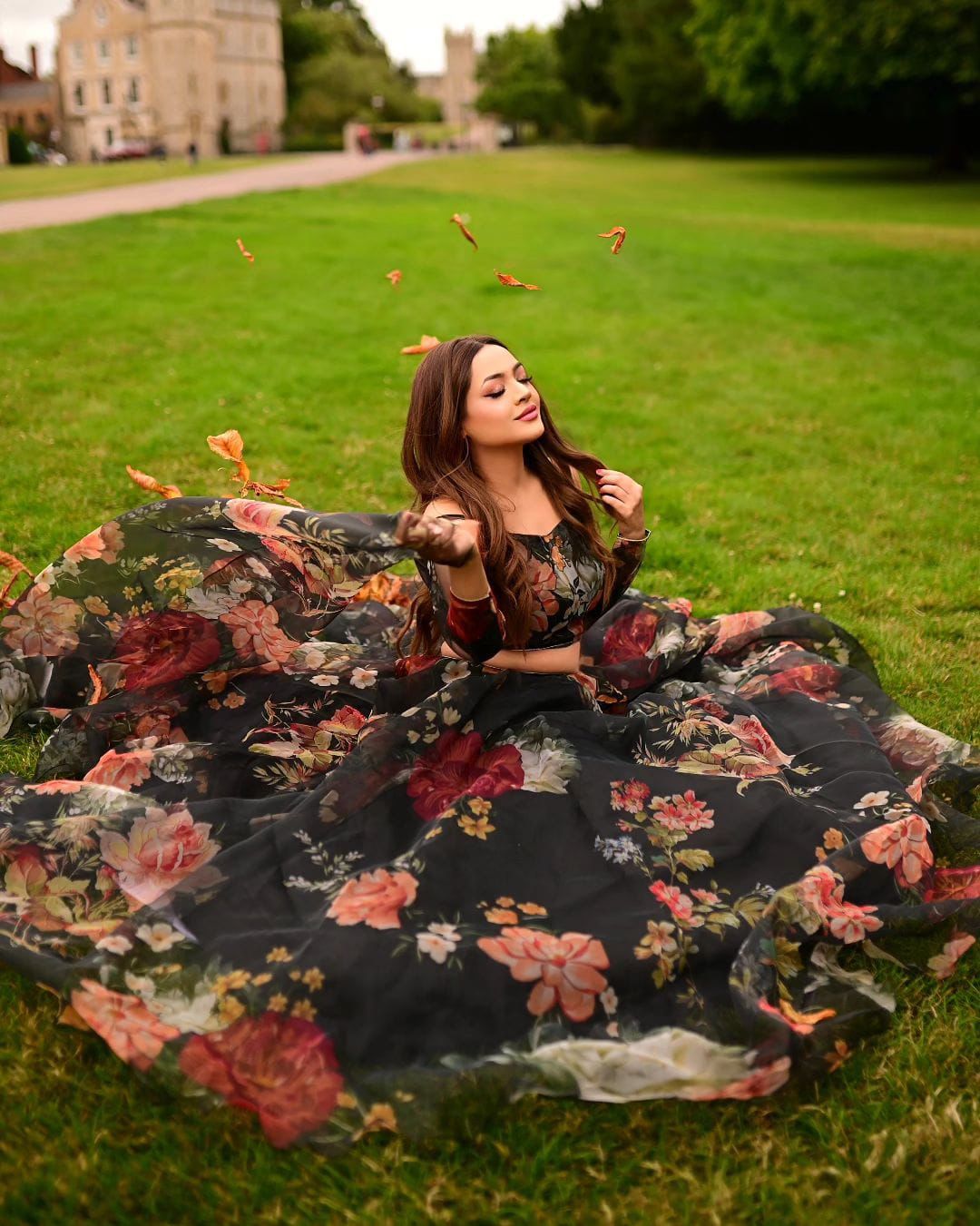 FABRIC : Organza, floral printed.