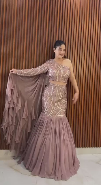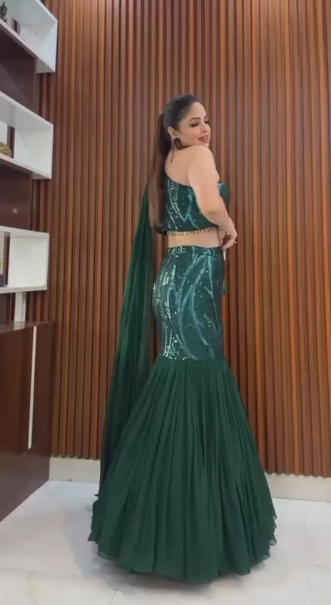 ✨ Boutique Style Faux Georgette Sequin Ruffle Lehenga with Attached Dupatta