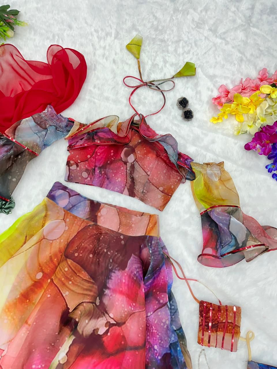 Captivating Multi Color Organza Silk Lehenga Choli