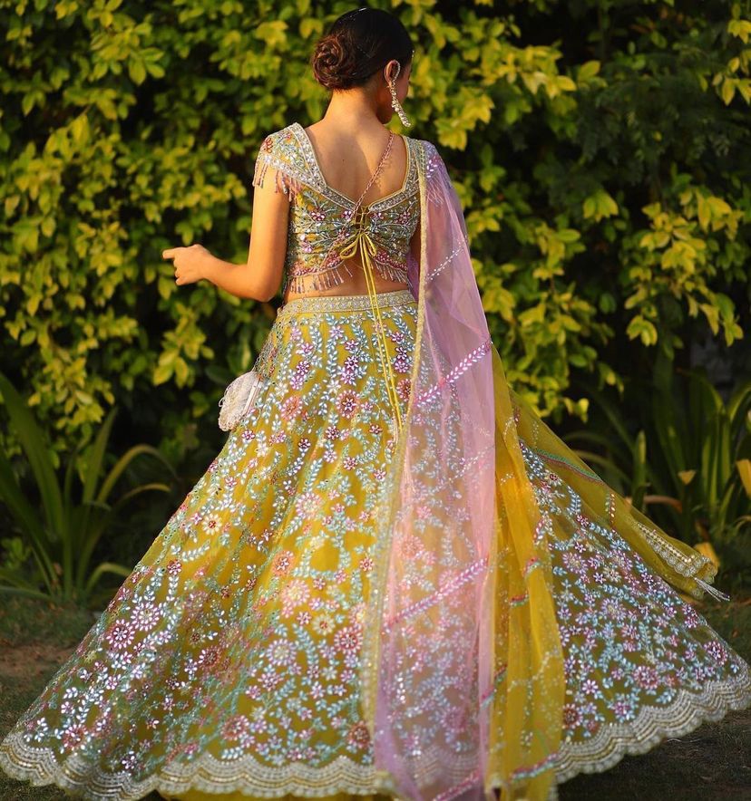 Work: Real mirror, pearl work and sequence embroidery work with cancan & canvas patta