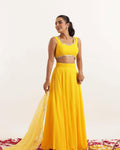 Lehenga: A pure georgette lehenga with an 8-meter flair, fully stitched and adorned with a canvas patta.