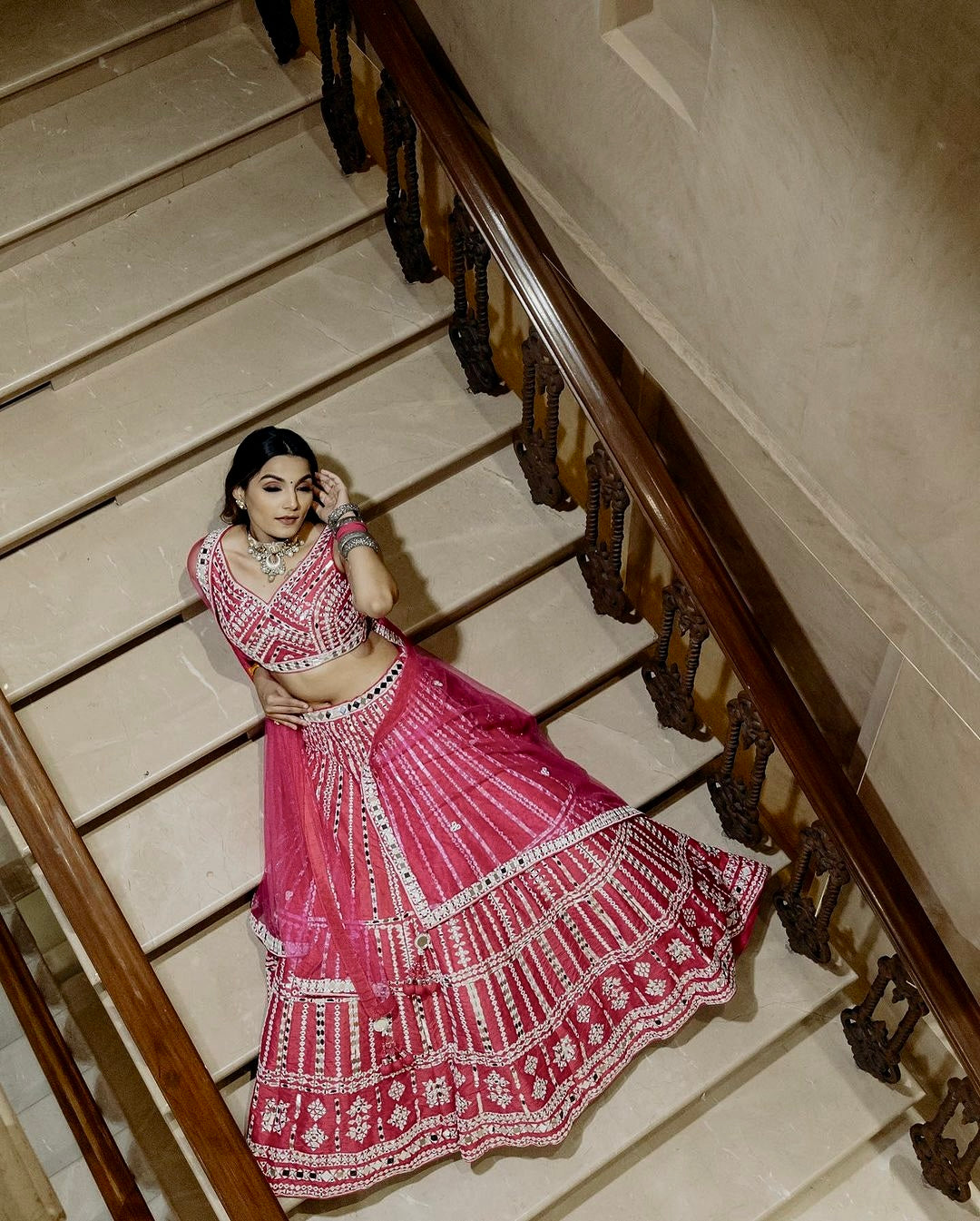 Net dupatta adorned with thread and paper mirror work (2.5 meters)