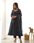 PURE SOFT FOX GEORGETTE LAHERIYA PRINT DKB-264-Black