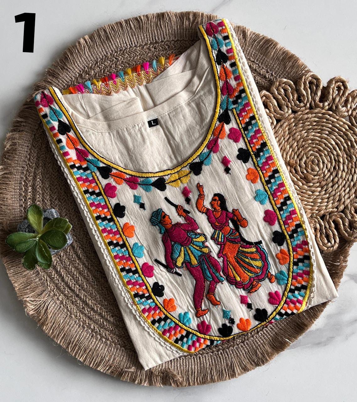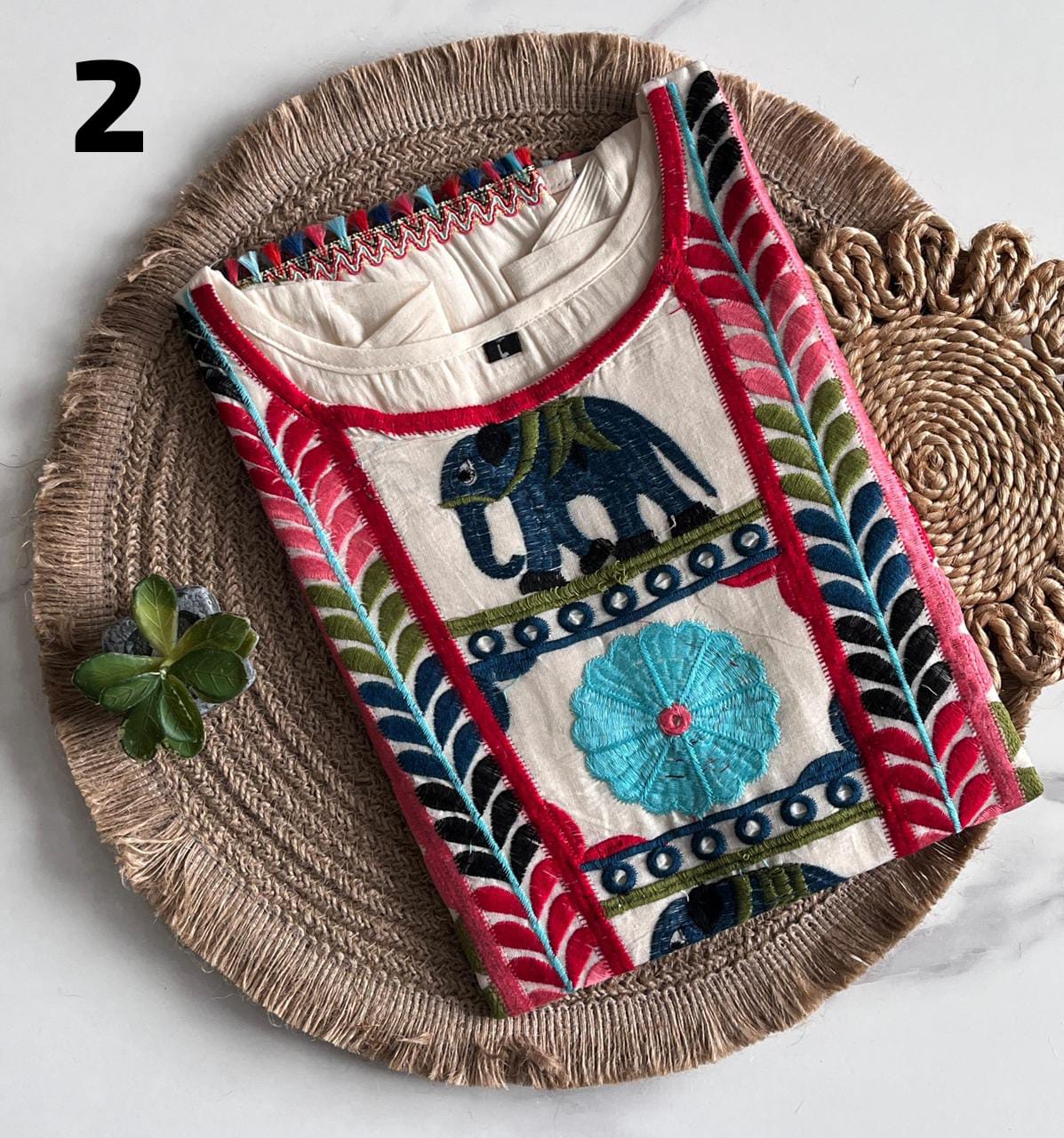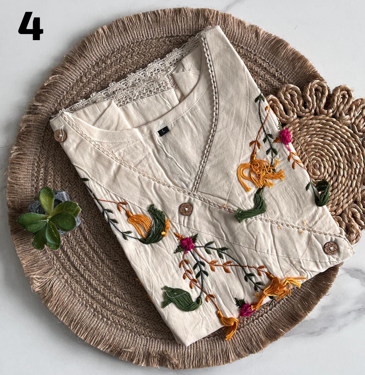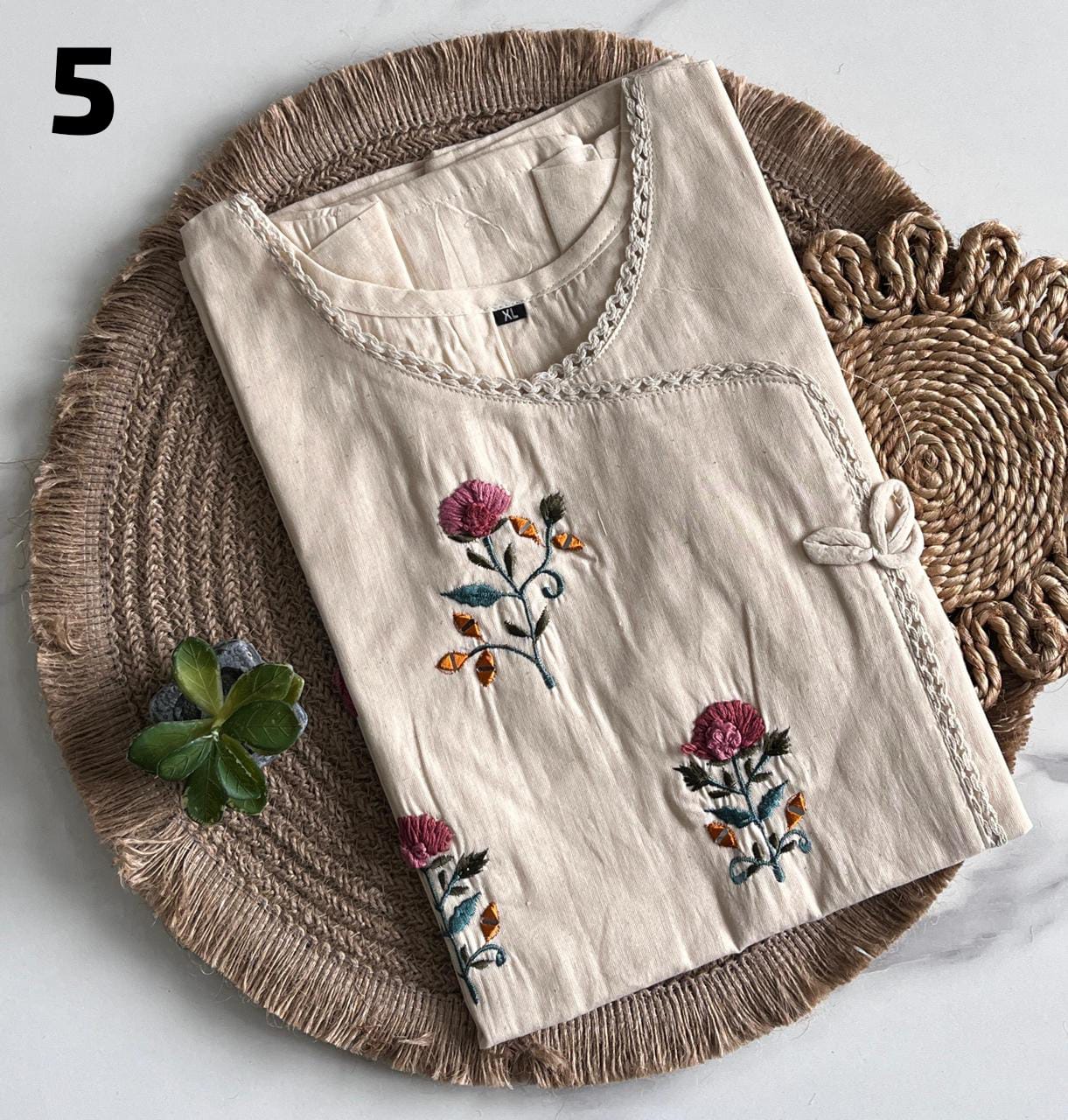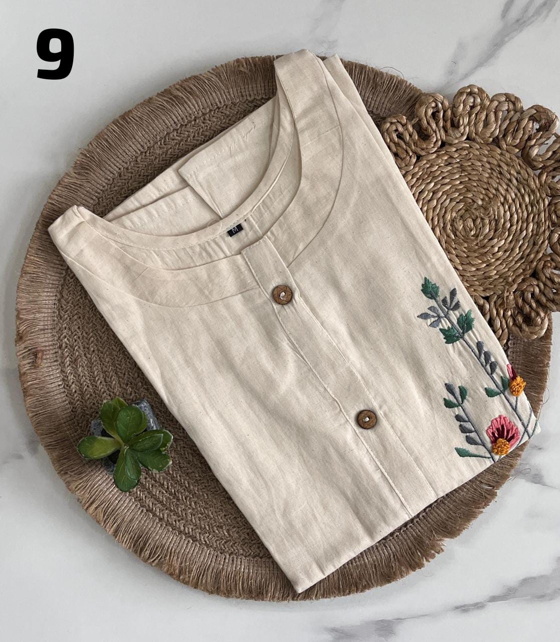 KURTI : Pure khadi cotton tunic with embroidery handwork & sequence work as shown.