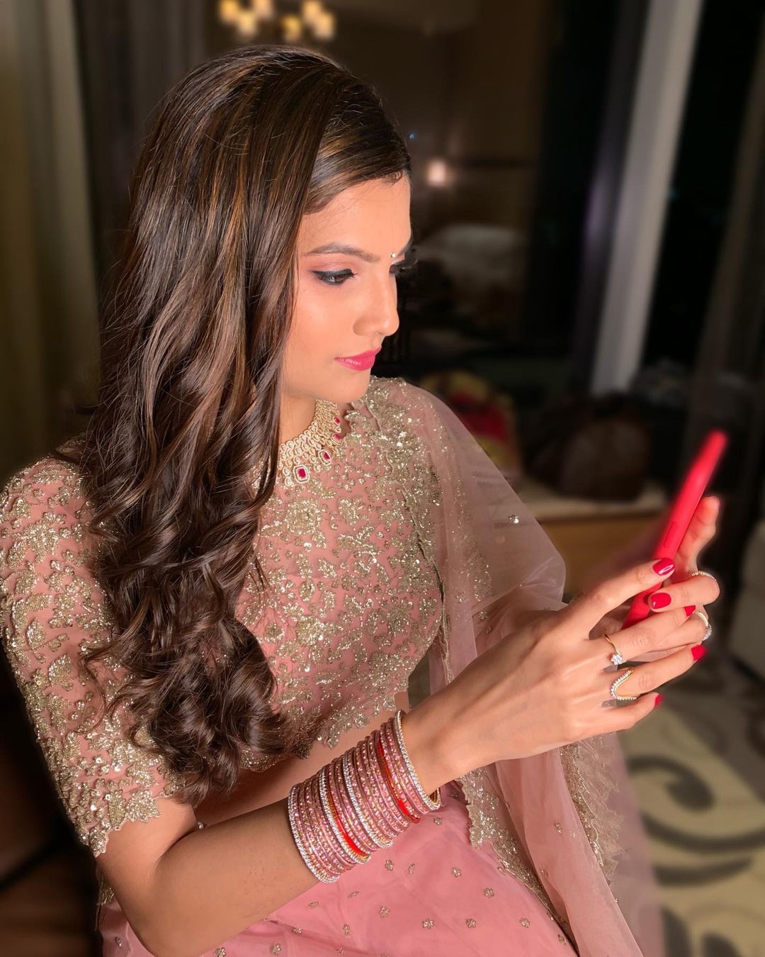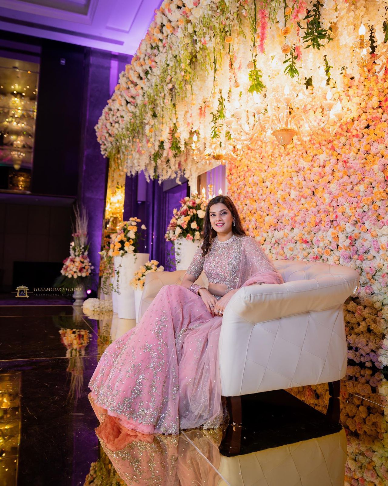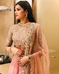 This three-piece outfit features a resplendent pink lehenga adorned with intricate embellishments, offering a perfect balance of grace and glamour. The accompanying choli boasts a modern cut, complemented by dazzling sequins and embroidery. Complete the look with a matching dupatta that adds an ethereal touch to your ensemble.