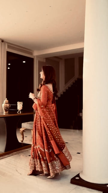 Elevate your ethnic wardrobe with this newly launched designer Anarkali gown set, crafted in premium Rangoli silk and adorned with elegant sequins and zari embroidery. Designed to offer grace, comfort, and a flawless silhouette, this fully stitched three-piece set is perfect for festive occasions, parties, and special celebrations.