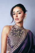 Designer Classic Baigani Silk Saree Set with Marodi & Mirror Work – Halter Neck Blouse
