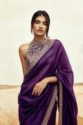 Make a powerful style statement with this Designer Classic Baigani Saree Set, a striking blend of traditional craftsmanship and contemporary design. Crafted in rich silk fabric, the saree features an ornate marodi and mirror work border, adding depth and regal elegance to the deep baigani hue.