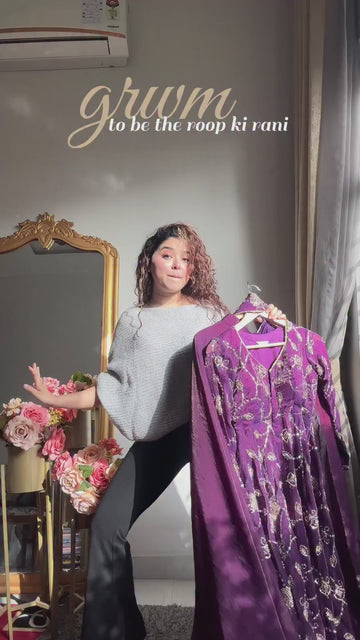 This elegant top and sharara set is crafted in rich Fandy silk and designed for a graceful festive look. The outfit features a long top with sleeves, a full-flair sharara, and a matching dupatta with embroidery sequence work. Soft micro cotton lining in the top and sharara ensures comfort along with style.