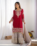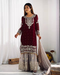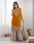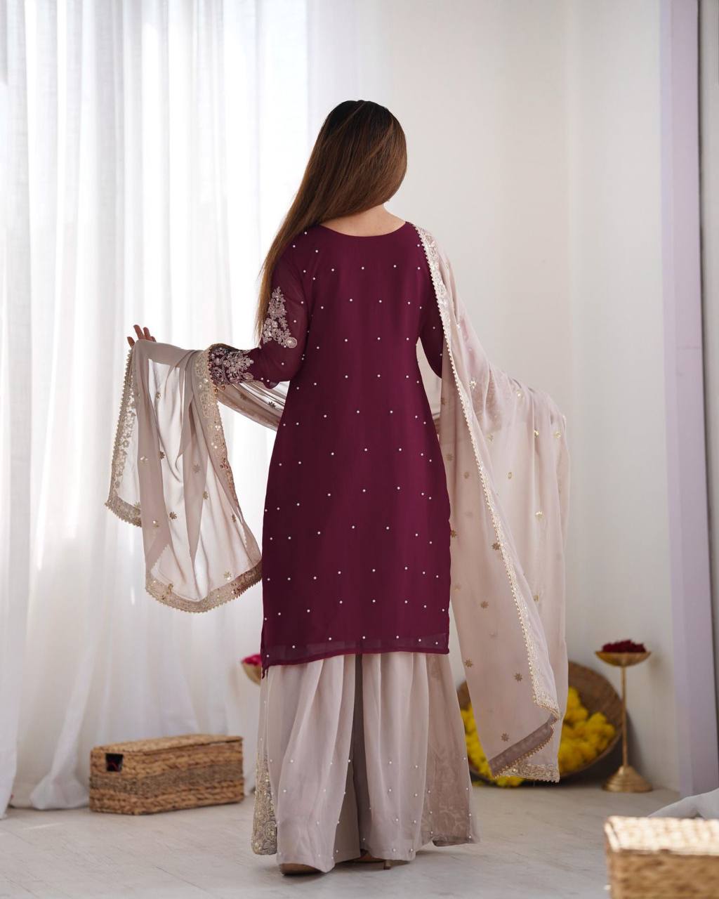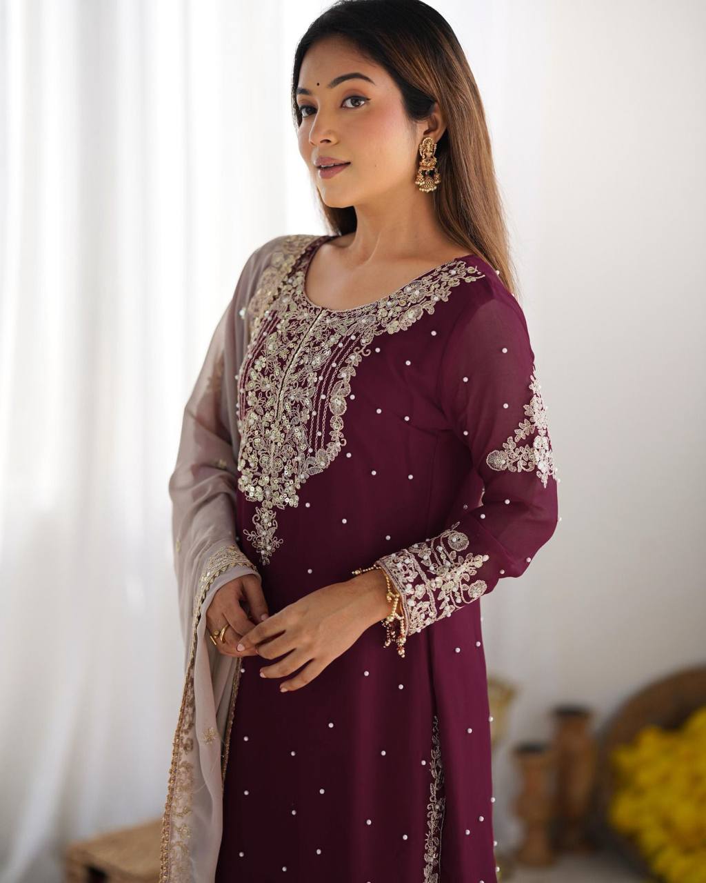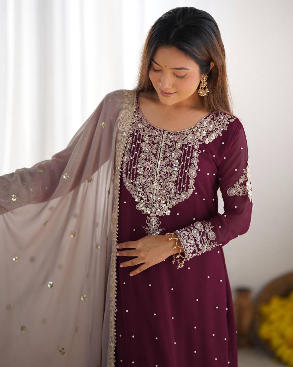 Fabric: Heavy Faux Georgette with Embroidery Coding Dori & Sequence Work + Rivet Moti Work