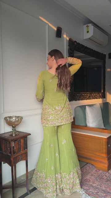 Designer Faux Georgette Top, Sharara and Dupatta Set with Heavy Embroidery Sequence Work