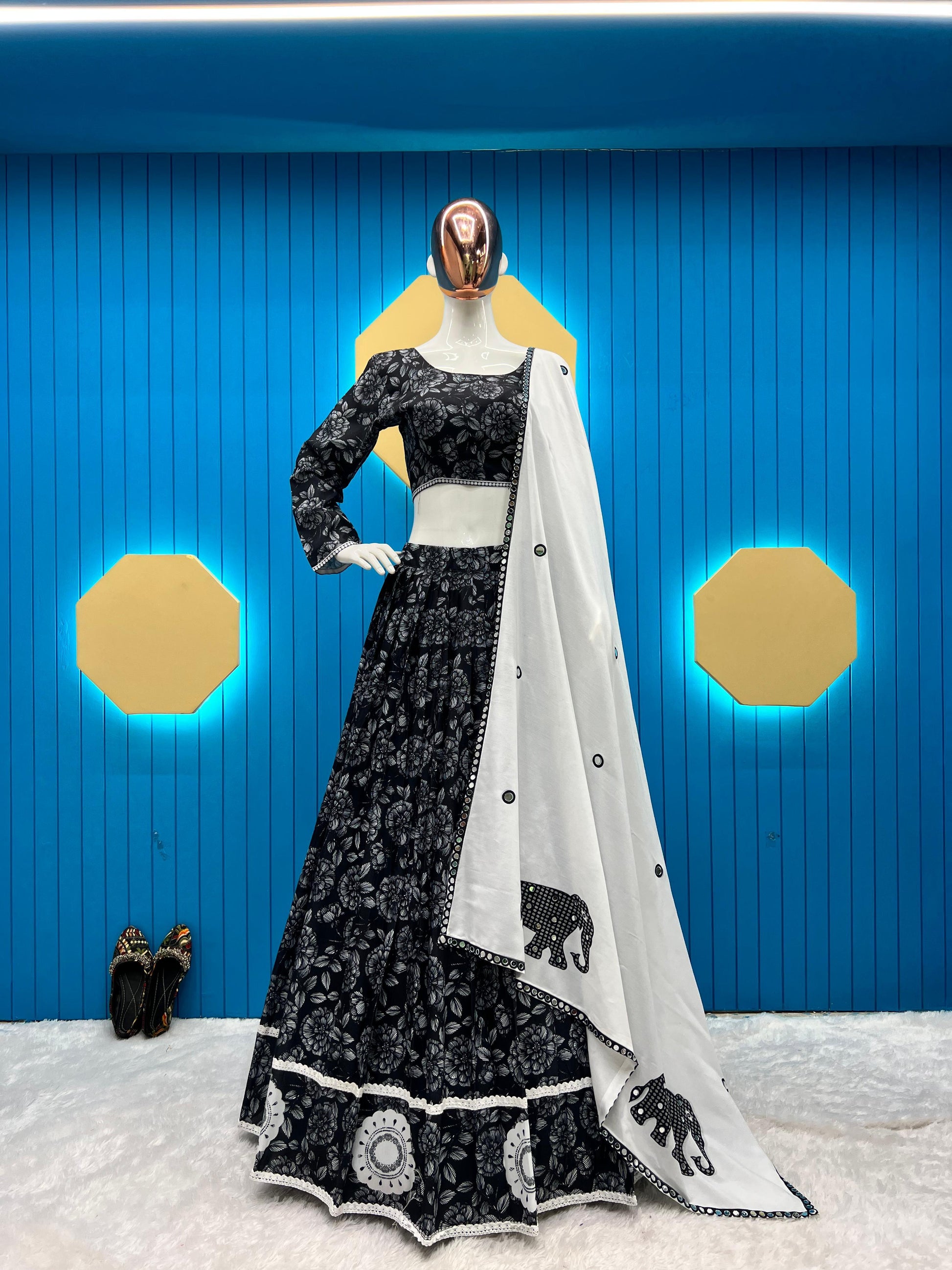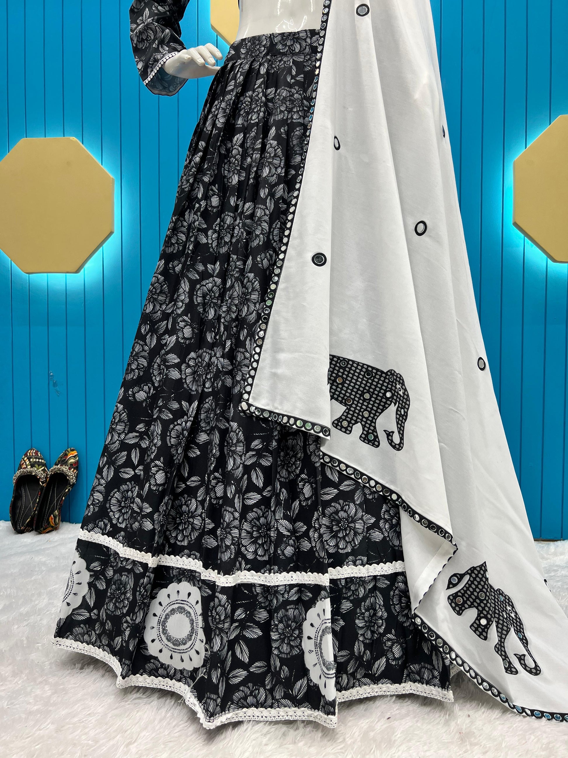 Dupatta : Rayon With Digital Print And Mirror Work (2.2 Meters)