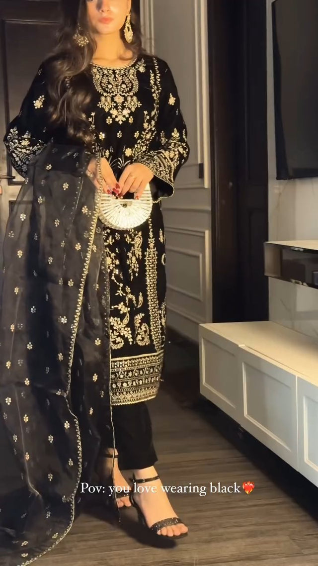 ✨ Because black is not just a color, it’s an emotion. Adorned with intricate golden embroidery and paired with a delicate organza dupatta for a royal festive look.