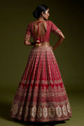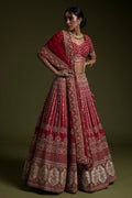 Lehenga: Rangoon silk featuring sequins, Dori, and thread work; flair: 3.75 meters; can can included.