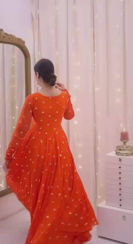🔹 Gown: Faux Georgette | Embroidery Sequin Work | Length: 52” | Flair: 7 mtr approx