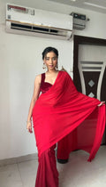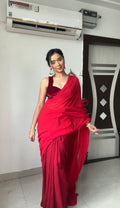 This exquisite saree is crafted from luxurious red fabric that drapes graceFullyy, accentuating the beauty of every woman who adorns it. The intricate gold border and delicate embroidery add a touch of opulence, making it perfect for special occasions and celebrations. Elevate your style with this timeless piece that seamlessly combines classic charm with contemporary elegance.