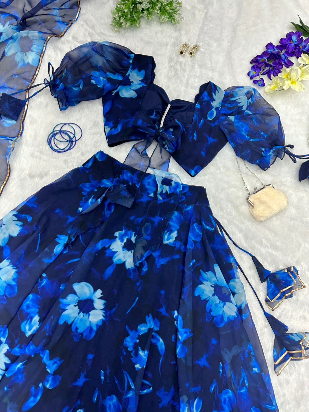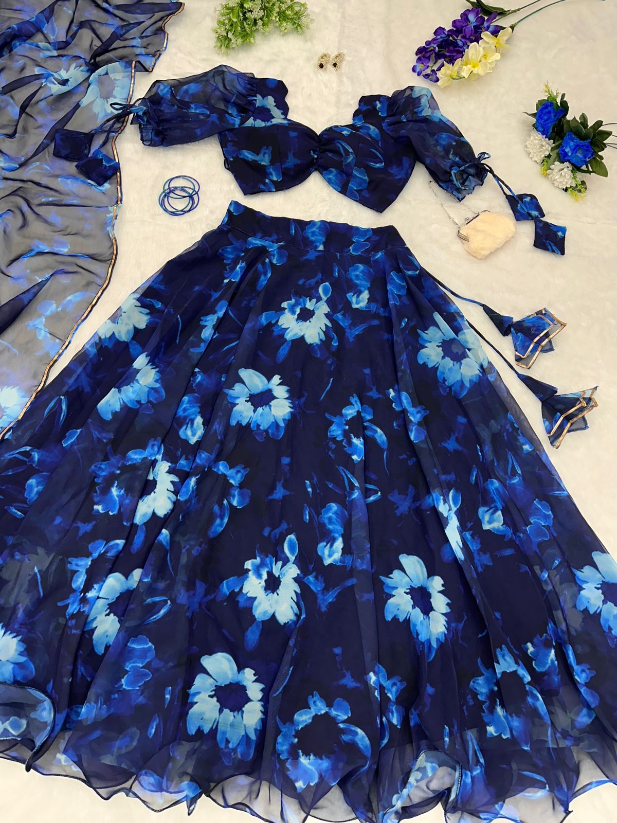 Fancy Blouse Navy Blue Color Lehenga Choli
