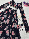 Fancy Sleeves Pattern Flower Print Black Lehenga Choli