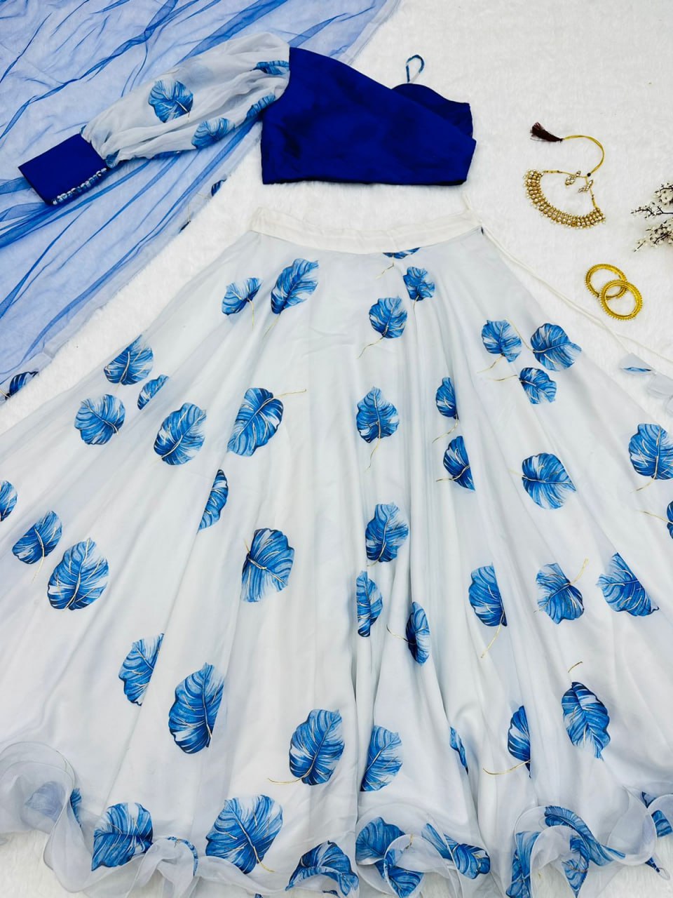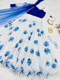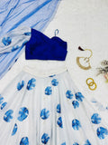 Fancy Style White With Blue Organza Lehenga Choli
