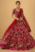 LEHENGA : Tapeta velvet lehenga with chain stitch embroidery & sequins work.