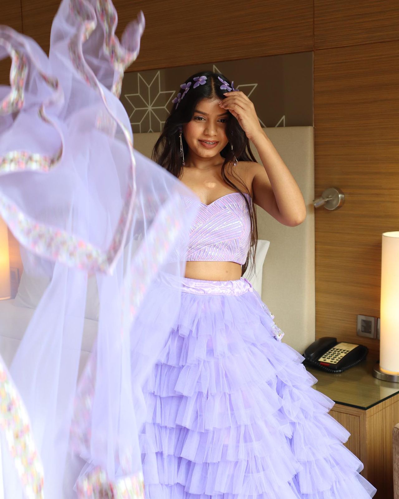 LEHENGA : Nylon Butterfly Frill Pattern Lehenga with Huge Flair. Waist Adjustable Dori.