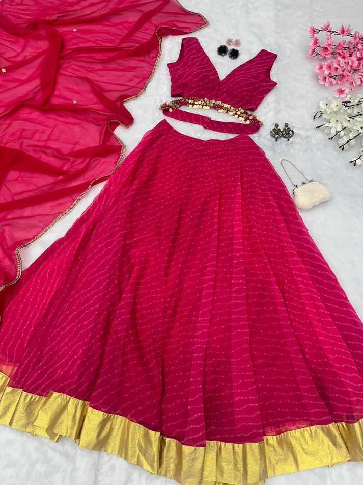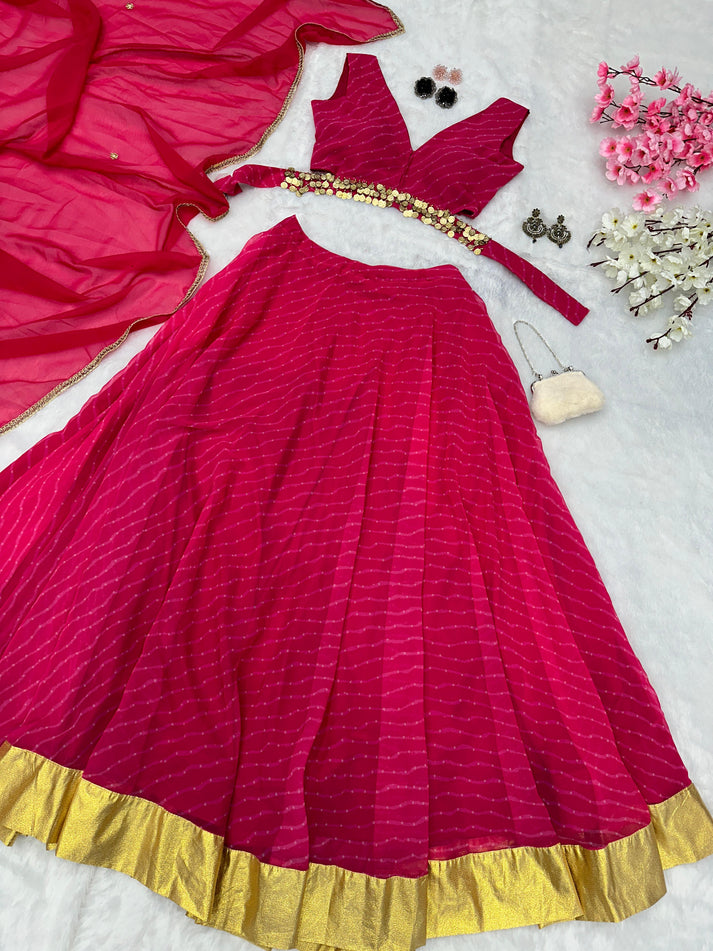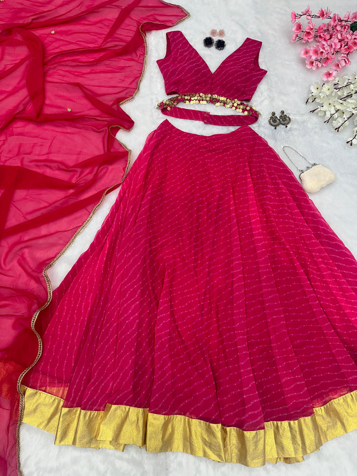 Function Wear Pink Color Printed Georgette Lehenga Choli