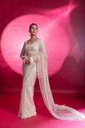 BLOUSE : Net blouse with fancy milky rainbow sequins and thread work all over front and back (Unstitched) Jhalar lace & Banglori satin inner provided.