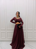 This exquisite ensemble effortlessly blends traditional charm with contemporary elegance. The luxurious fabric drapes beautifully, showcasing intricate embellishments and sequined details that catch the light with every graceful movement. The carefully crafted Lehenga is paired with a stylish Choli that accentuates your silhouette, making you feel like a true fashion icon. Perfect for grand celebrations, weddings, or any special occasion where you want to make a statement of timeless glamour.