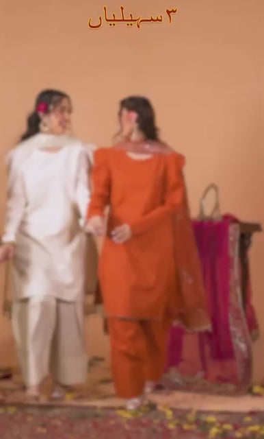 Glamorous Party Wear 3-Piece Set – Crepe Silk Top & Farshi Salwar