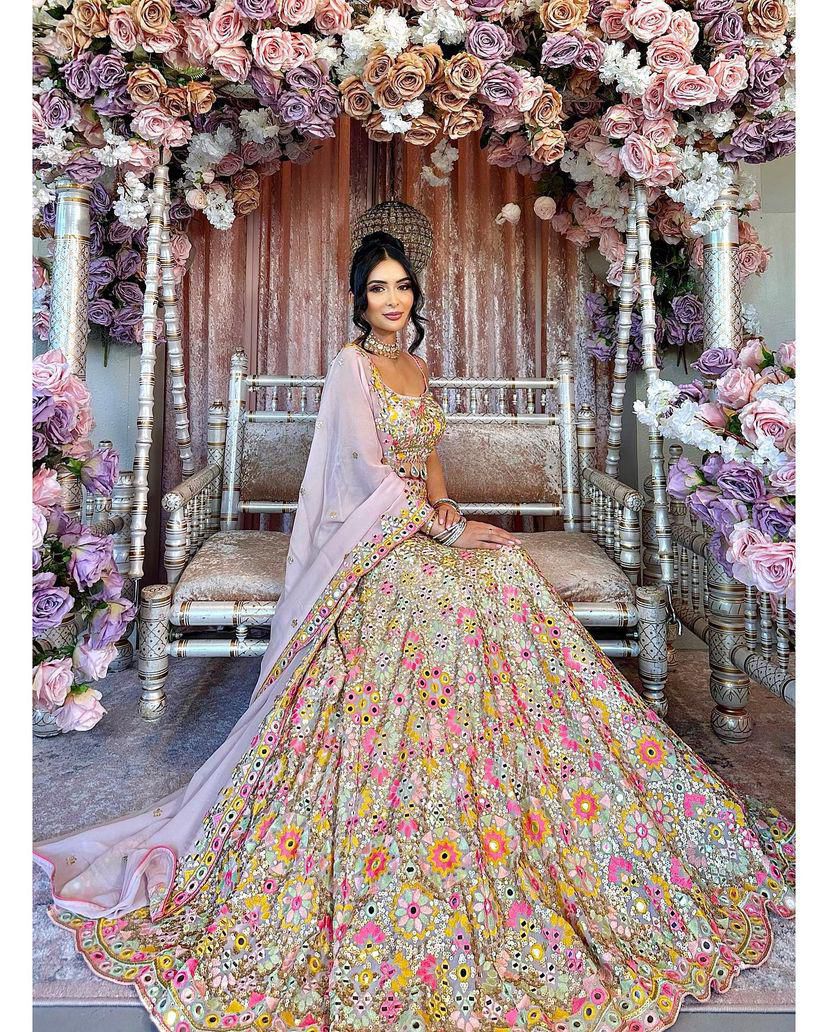 LEHENGA : Georgette with Real Mirror Embroidery, Sequins And Cut Work.