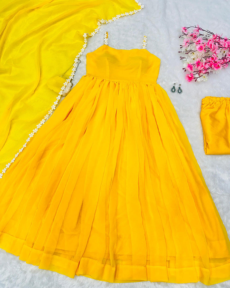 Haldi Special Yellow Color Faux Georgette Gown With Dupatta