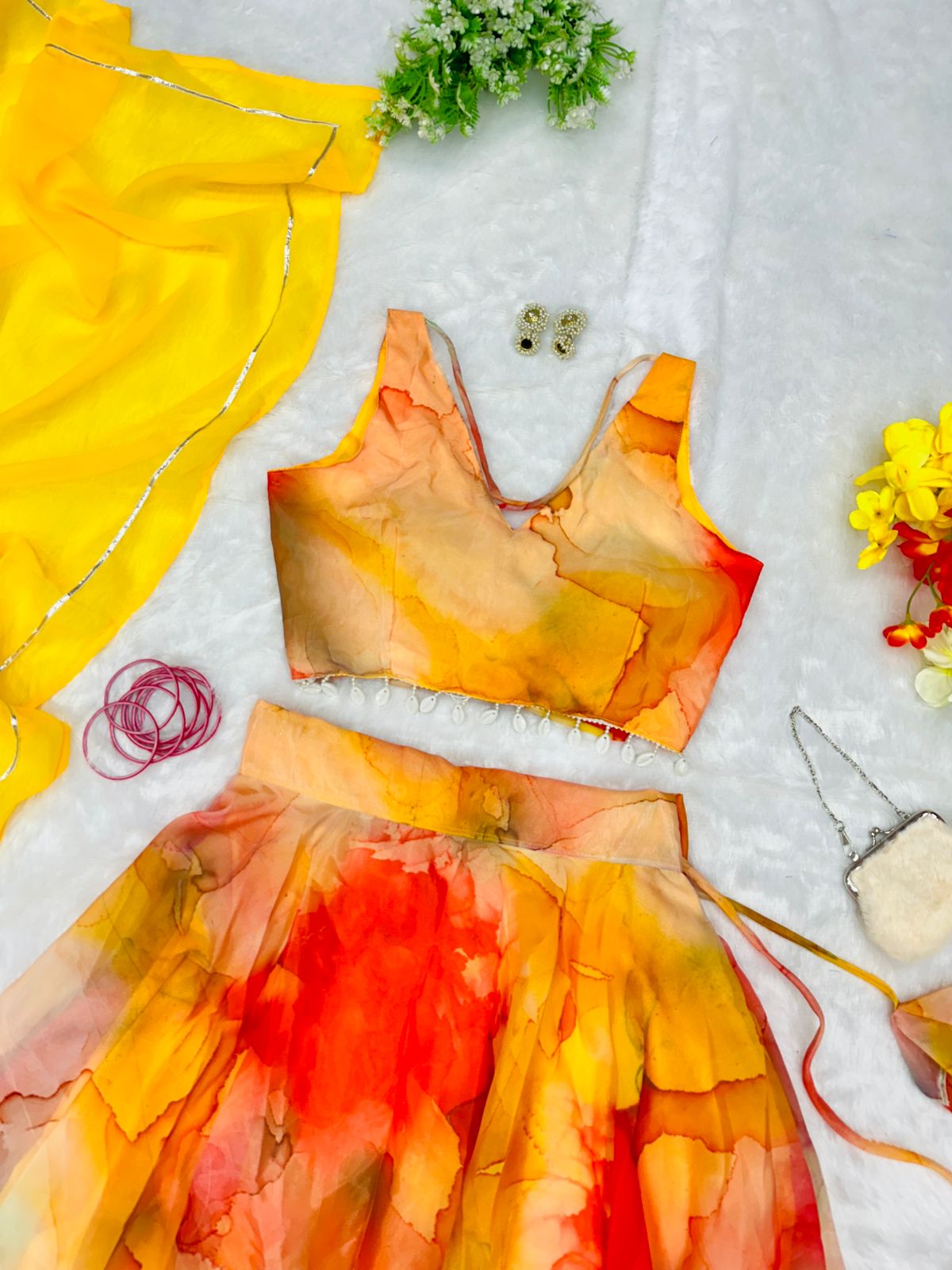 Haldi Style Shibori Print Yellow Color Lehenga Choli