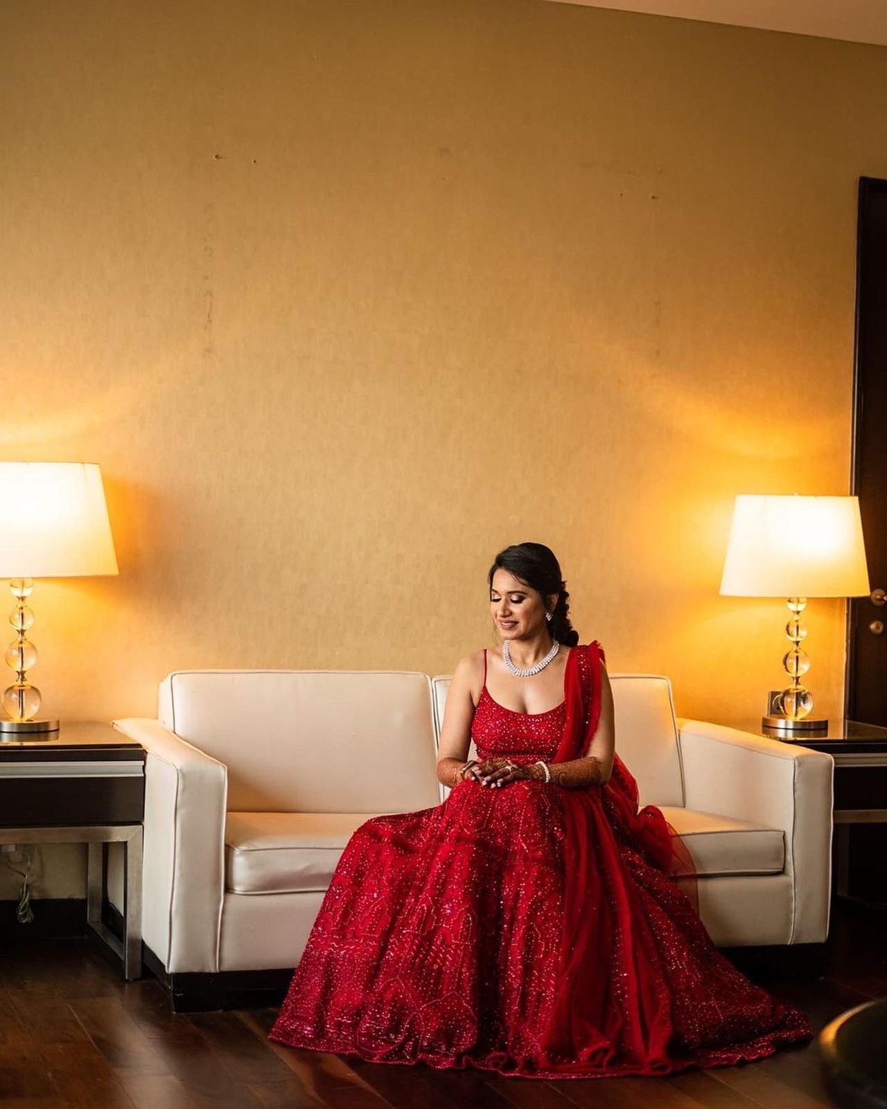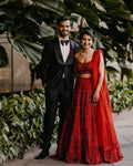 This exquisite ensemble features a vibrant red lehenga adorned with intricate embroidery and sequin detailing, creating a stunning visual impact. The choli complements the lehenga with its stylish design and meticulous craftsmanship. The outfit is perfect for those special occasions, radiating sophistication and glamour. Elevate your ethnic charm with this Haute Red Lehenga Choli, designed to make you stand out on your most memorable moments.