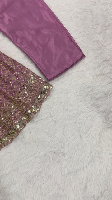 Heavy Chinnon Silk Embroidery Sequence Work Anarkali Suit Set with Pant and Dupatta