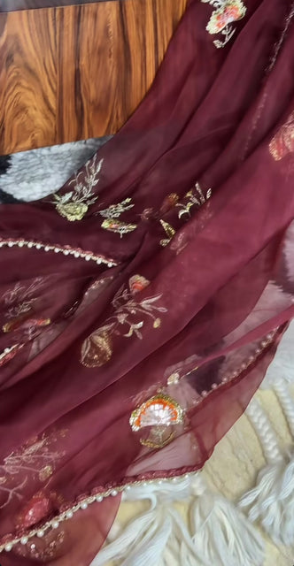 • Dupatta Fabric: Heavy tabby organza silk with 5mm sequence embroidery work and fancy lace border