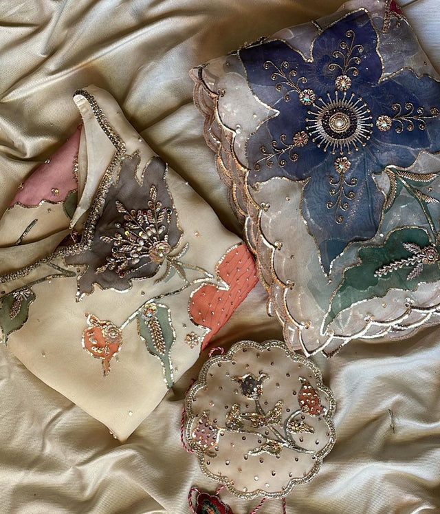 Dupatta : Organza Floral Hand Painted