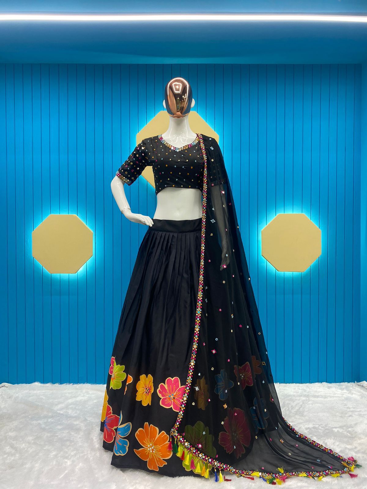 Lehenga : Pure Cotton Print And Real Mirror Work Lehenga