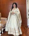 Lace Blossom Gold Anarkali Set