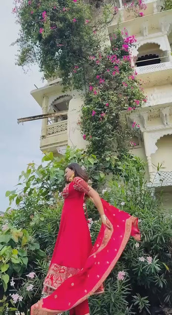 A premium Anarkali suit set crafted in heavy natural crepe silk, designed to deliver a rich and elegant festive look. Featuring detailed embroidery with sequence work and a grand 4-meter flair, this outfit offers a perfect blend of luxury, comfort, and modern ethnic styling.