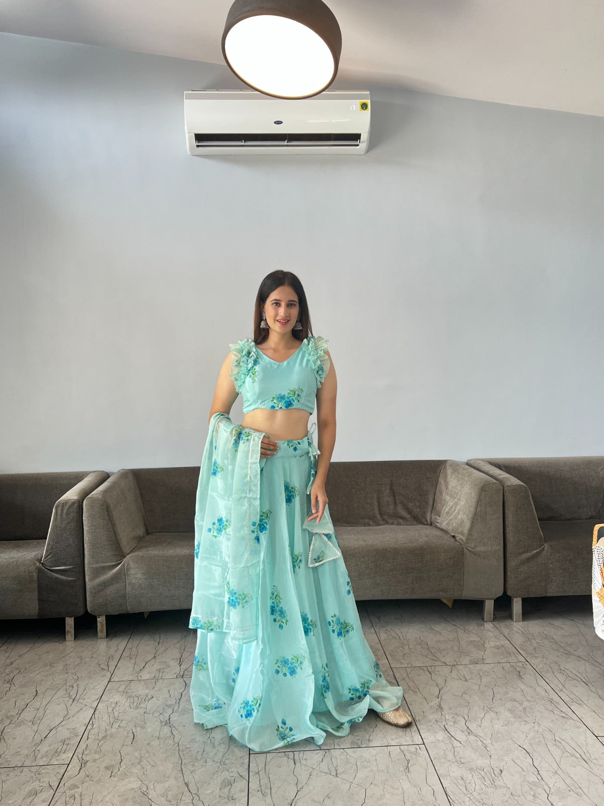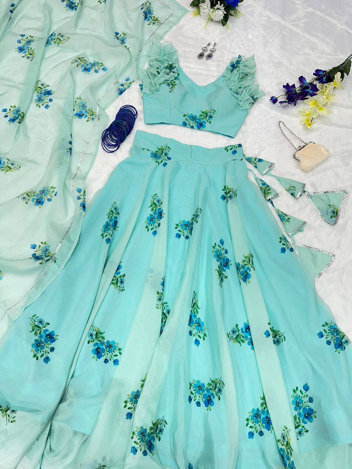 Mesmerizing Aqua Green Color Organza Silk Lehenga Choli