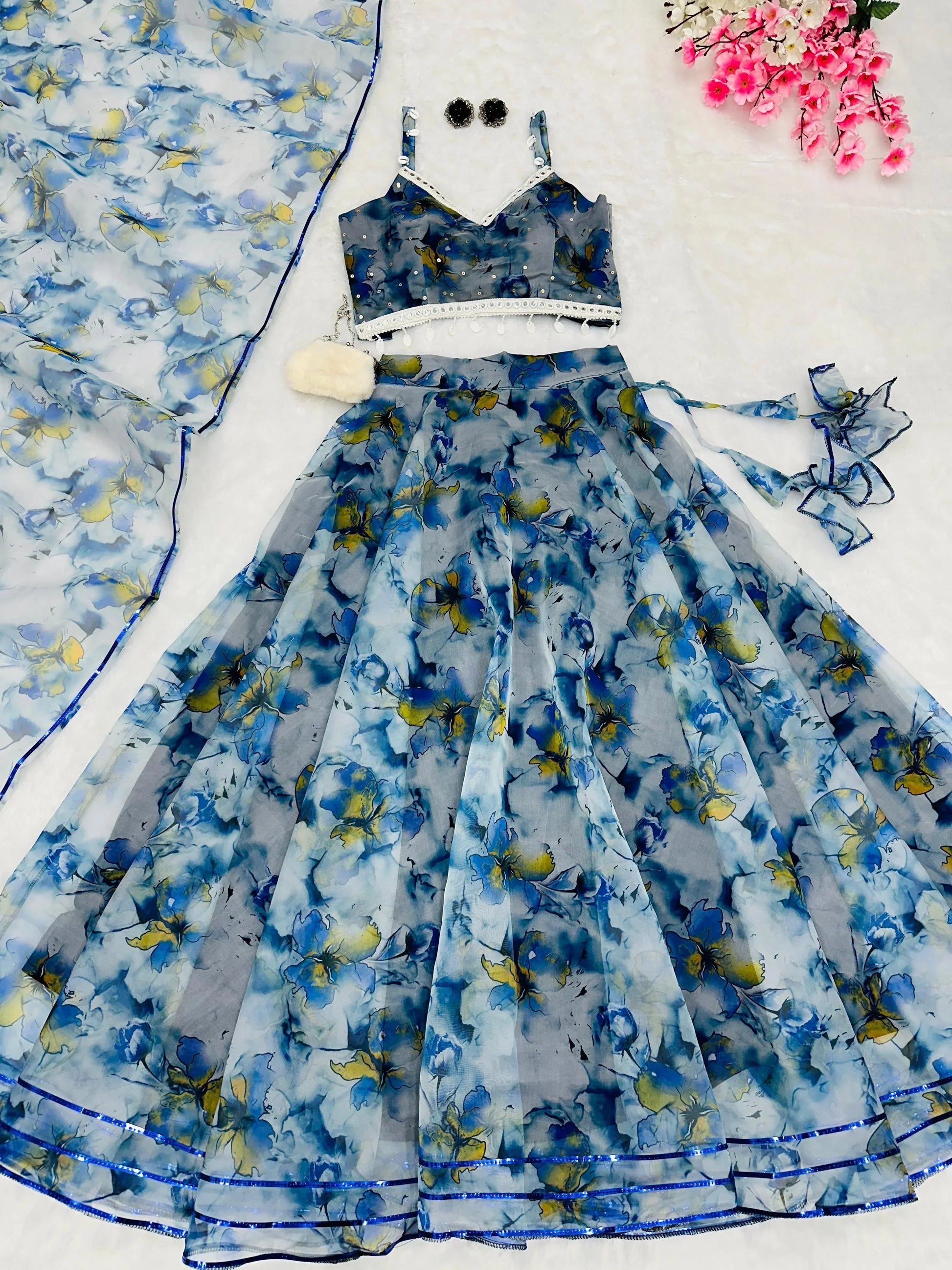 Mesmerizing Blue Color Organza Lehenga Choli
