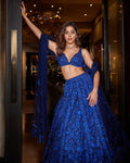 Dupatta : Butterfly net Sequence With Thread With Fourside Cut Lace Border